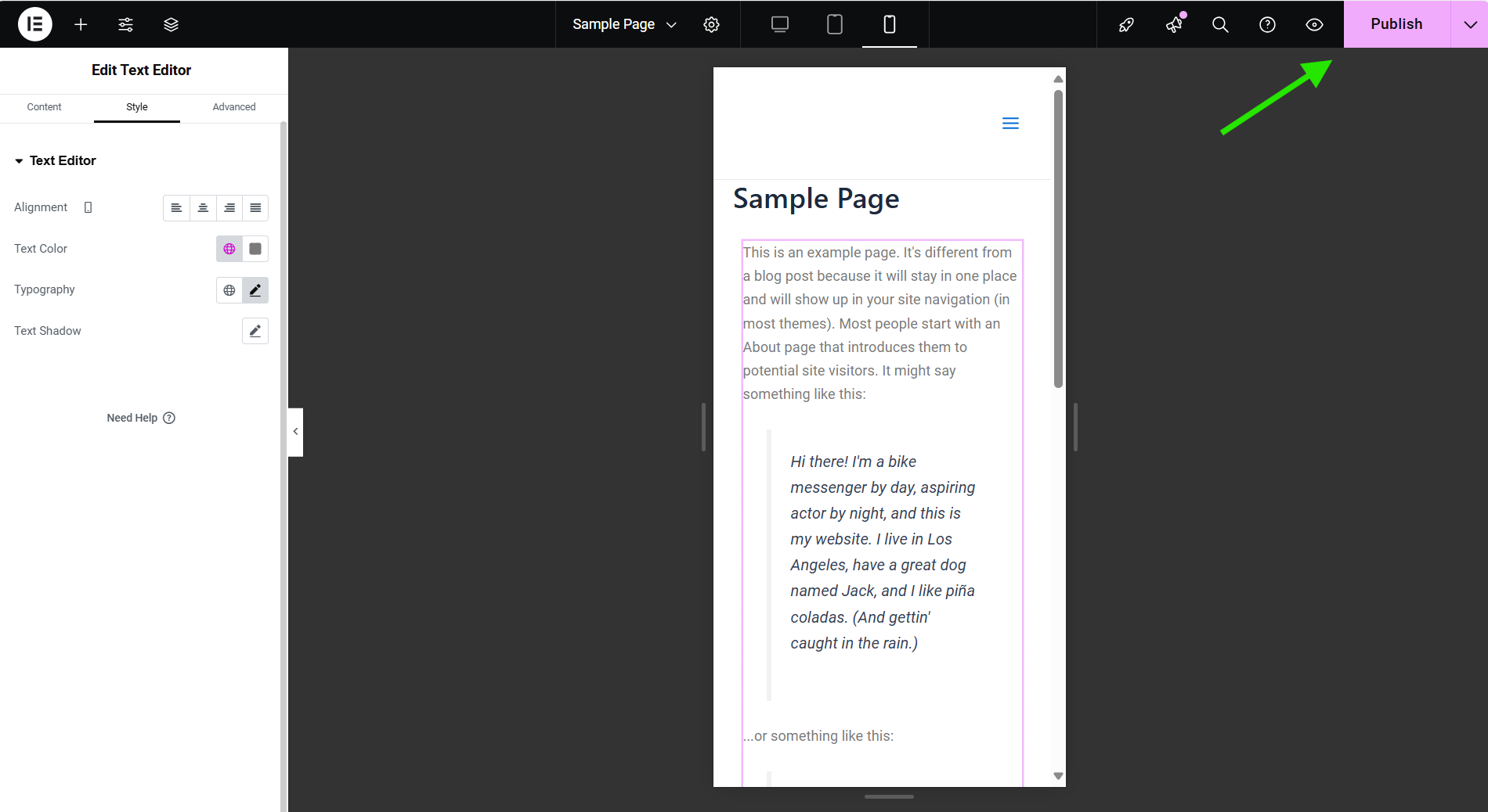 Once you’re ready, be sure to save all changes in your page builder by clicking on the Publish button in the upper right-hand corner of your Editor.