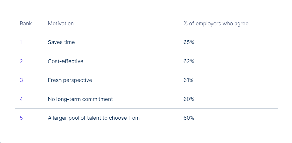 Besides benefiting freelancers and clients, freelancing platforms can be advantageous for businesses as well. According to research between US and UK employers, over 60% believe that working with freelancers saves time and is cost-effective.