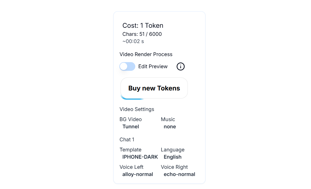 Generate videos that simulate text message conversations, mimicking real chats from different messaging platforms.