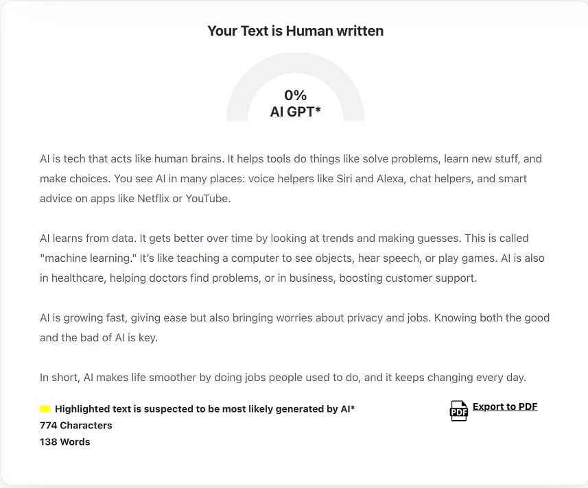 By the way, the original ChatGPT text test showed over 85% AI detection.