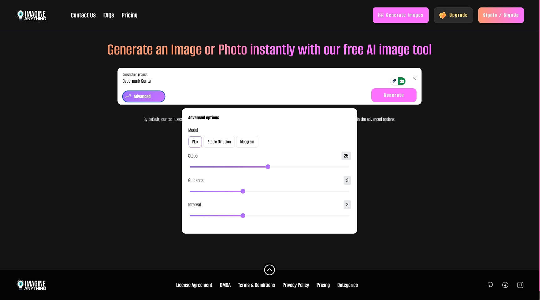Then we entered a prompt into the text box for our future picture. By clicking on the “Advanced” button, we could select one of the available AI models and customize some settings for them. We left them default for this test.