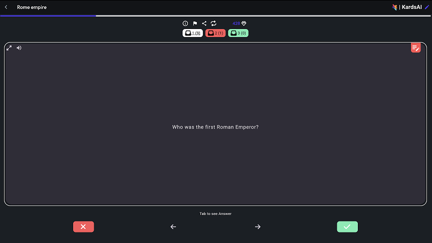 After those steps, the website directed us back to the main page and asked us to wait a little bit. It took us about 20 seconds to wait until the generation was completed. We entered to our cards deck, and here it is, 10 AI-generated question cards perfectly themed for history lessons. Generation cost us 200 gems when in the start we got1000for free.