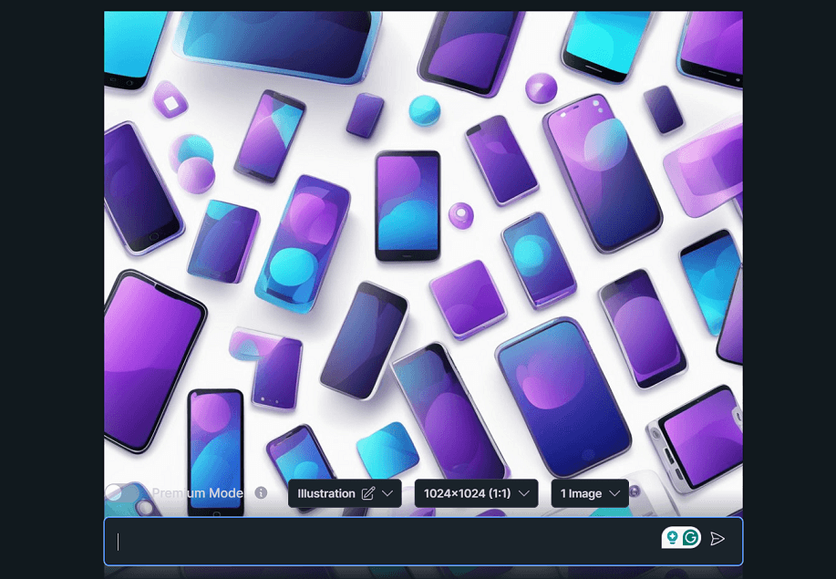 Next, we tested Koala AI's image-generation feature. We asked it to create an image with the following description:"Please create an image illustrating mobile marketing, using blue and purple graphics on a clean white background. Include elements like smartphones, icons (e.g., notifications, charts, or social media), and modern digital design styles.
