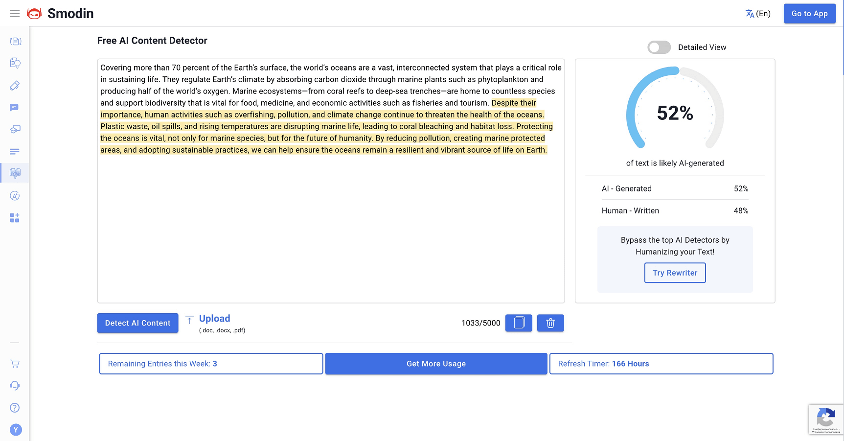 Click to analyze or rewrite your content. The AI will detect AI-generated text, suggest rewrites, or check plagiarism accordingly.
