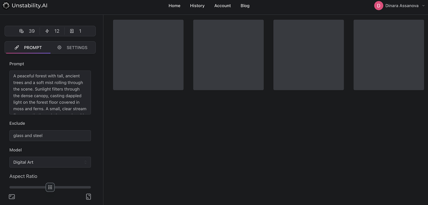For our test, we signed up using our Google account and got 52 slow credits for the day. The tool is not available without signing up. We chose to generate a digital artwork of a tranquil forest landscape.